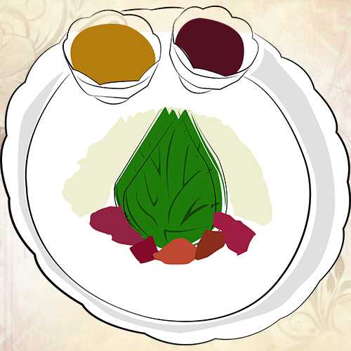 During this ceremony, the mother-in-law carries a silver plate with several smaller bowls (Kinnam). Each bowl has different ingredients like Vethalai( betel leaf), Kumkum (vermilion), Manjal(turmeric), etc. She takes out a bit from each bowl, one after the other, and applies it to herself and then for her daughter in law. Each ingredient stands for a special blessing like prosperity, freshness, purification, fertility, soul connection, etc.